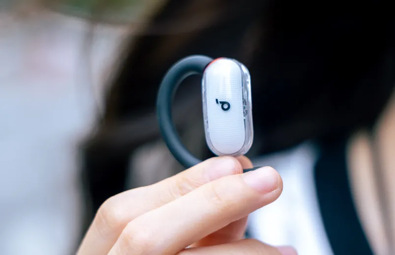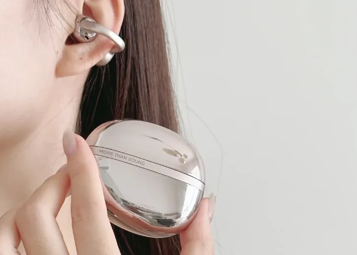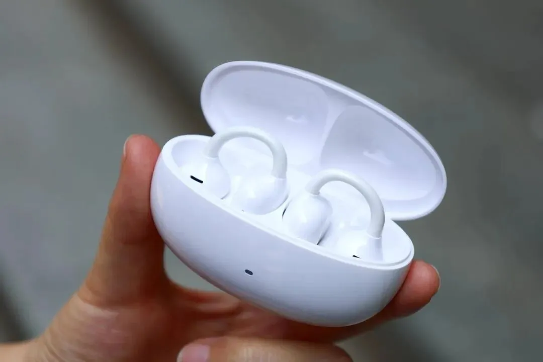该耳机外观采用未来美学设计,主打潮酷极简的风格。配备4档可调节耳挂,对不同耳型的兼容性高。机身采用了高弹亲肤材质,柔韧性良好,单耳重量为10.1g,长时间佩戴可能产生轻微压迫感。