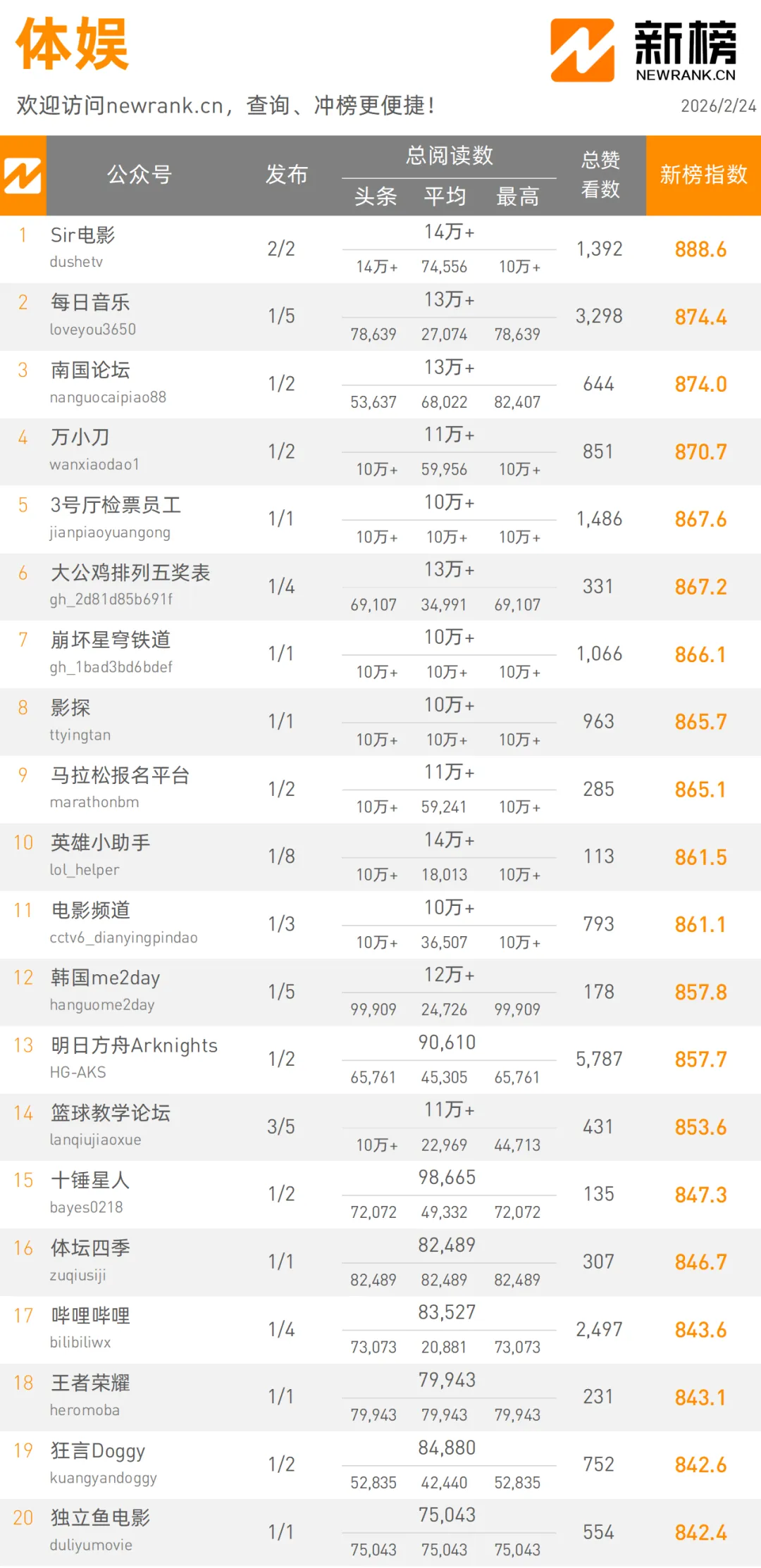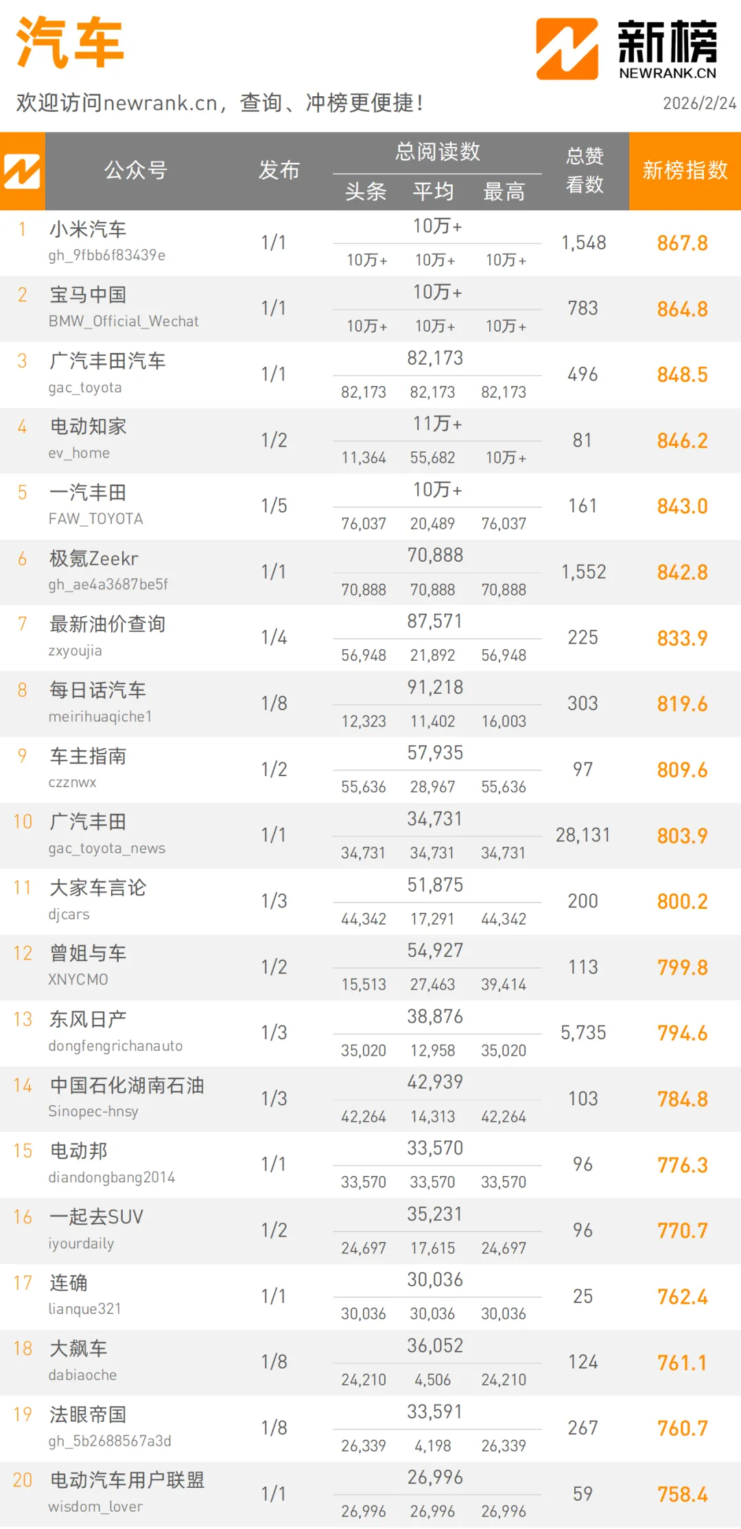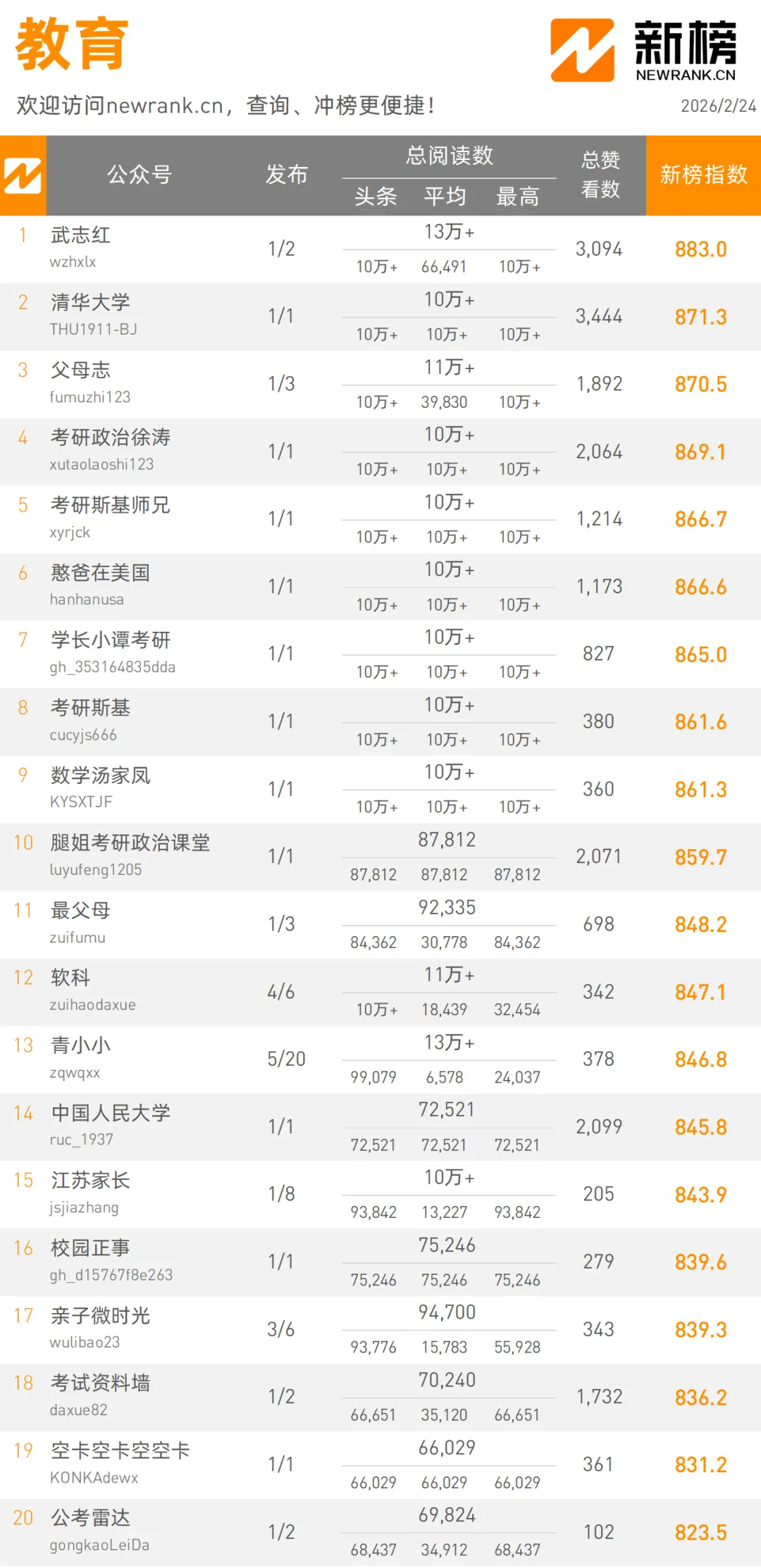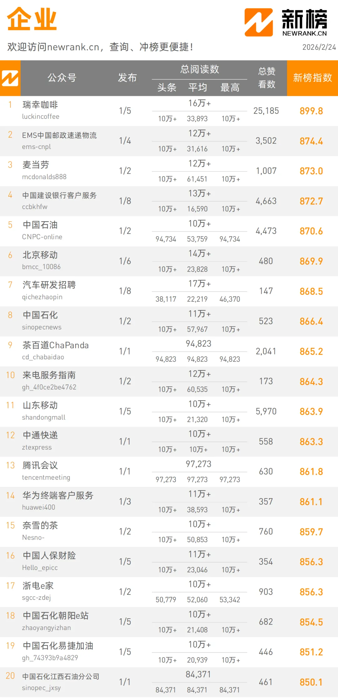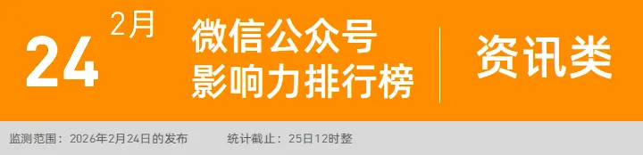 >2月24日微信公众号影响力排行榜 | 新榜发布