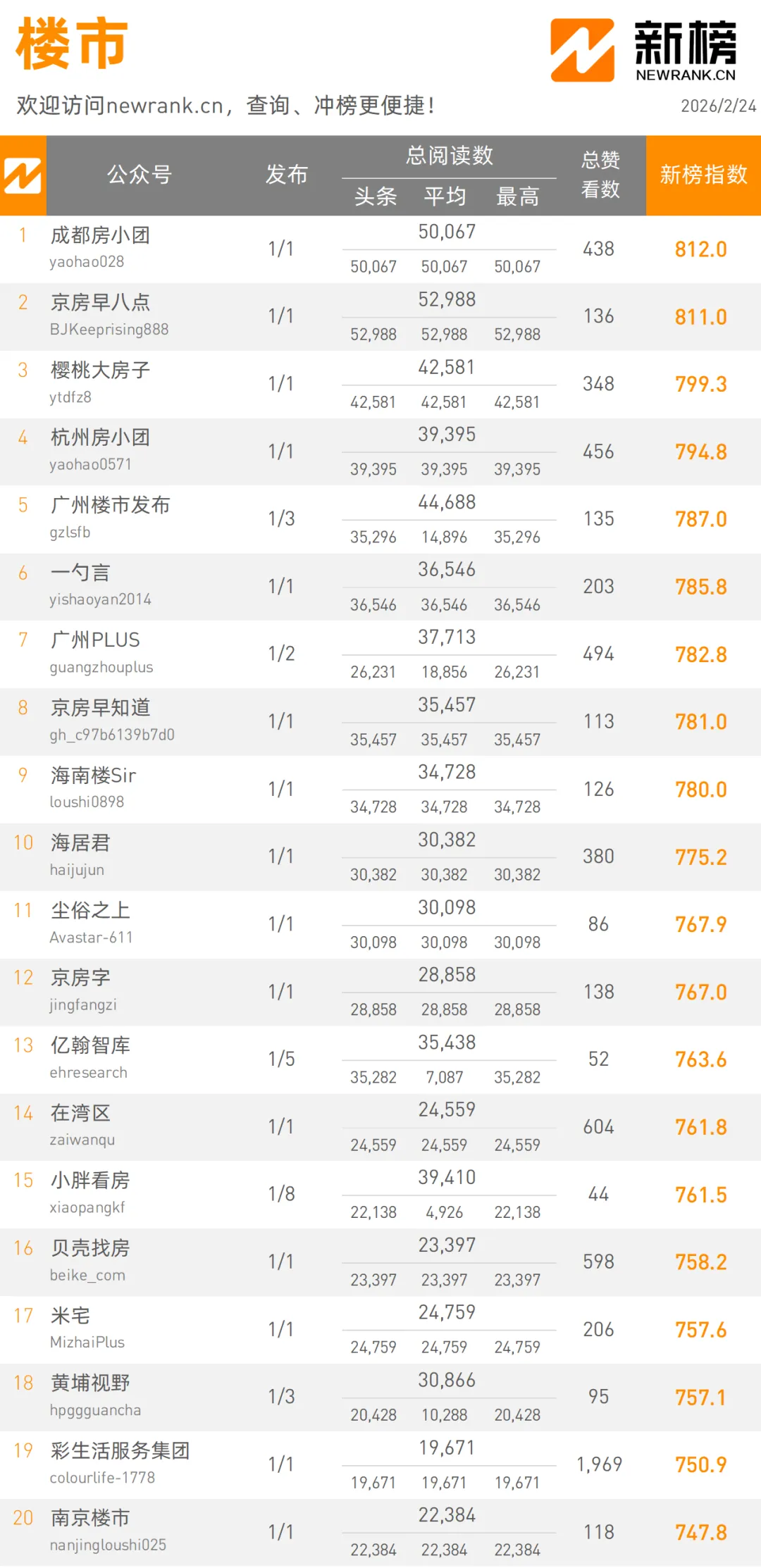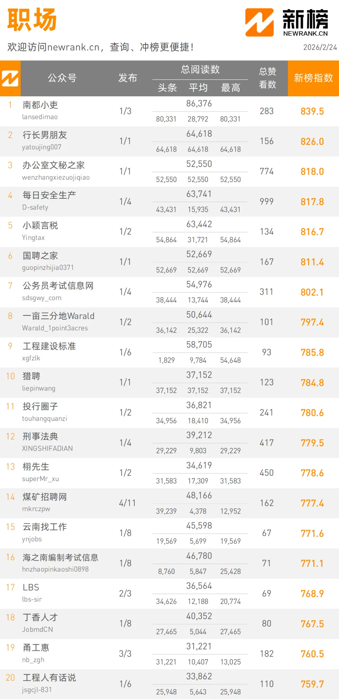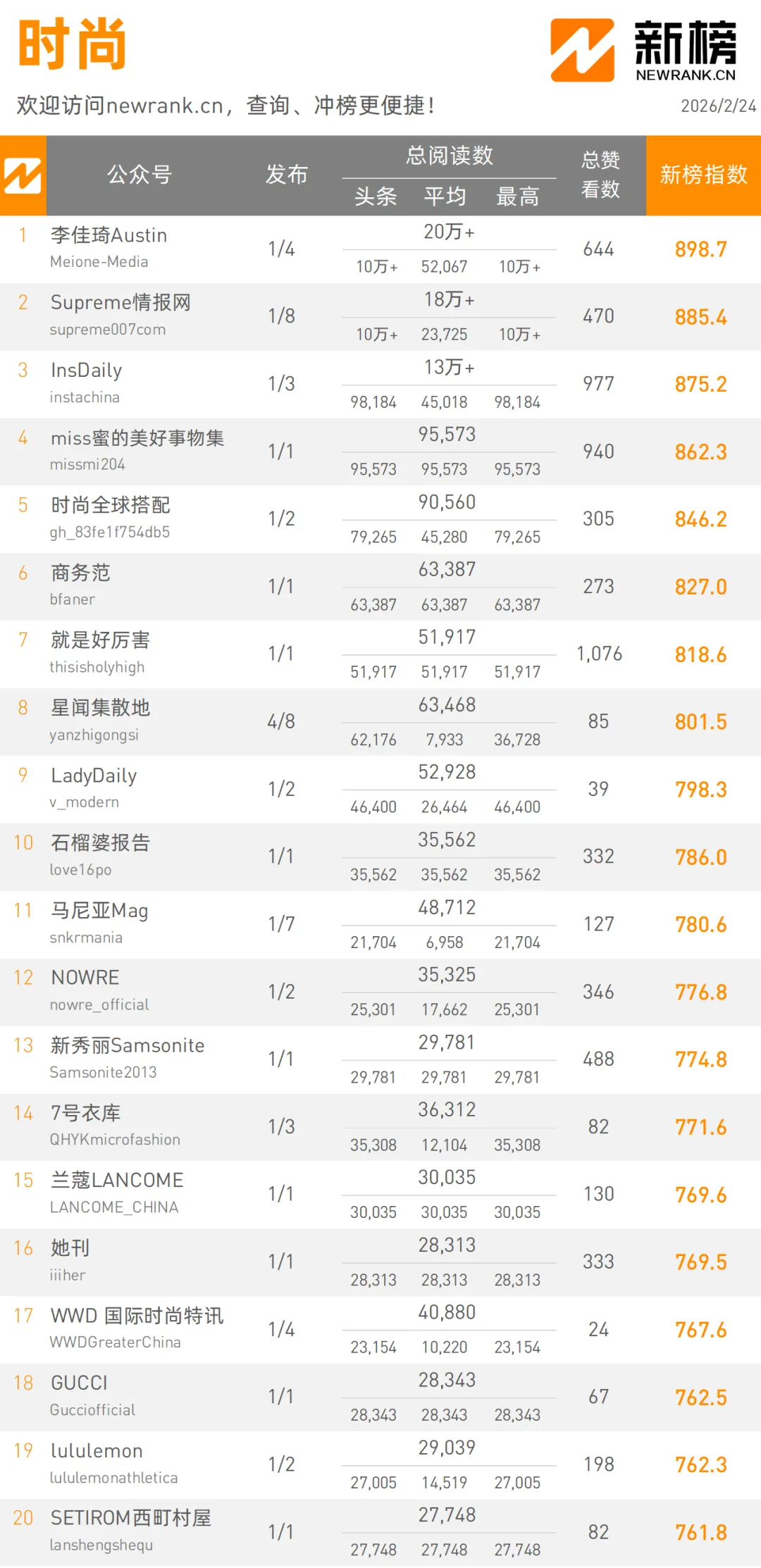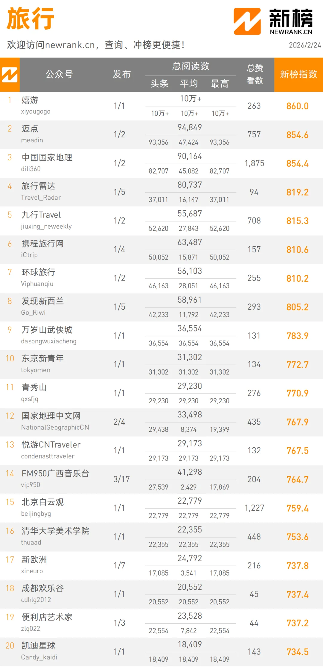 >2月24日微信公众号影响力排行榜 | 新榜发布