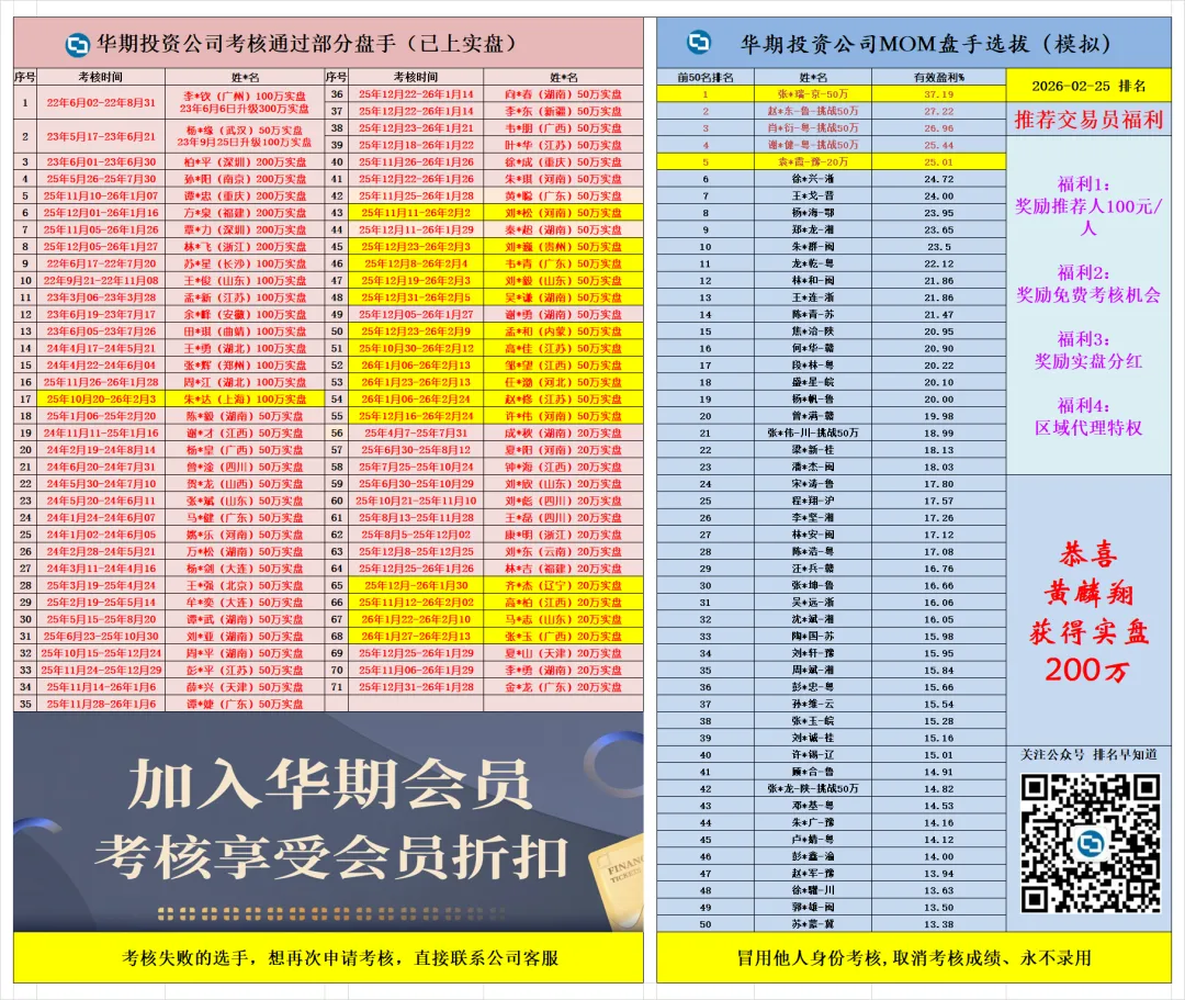↓华期考核前50名排行榜↓