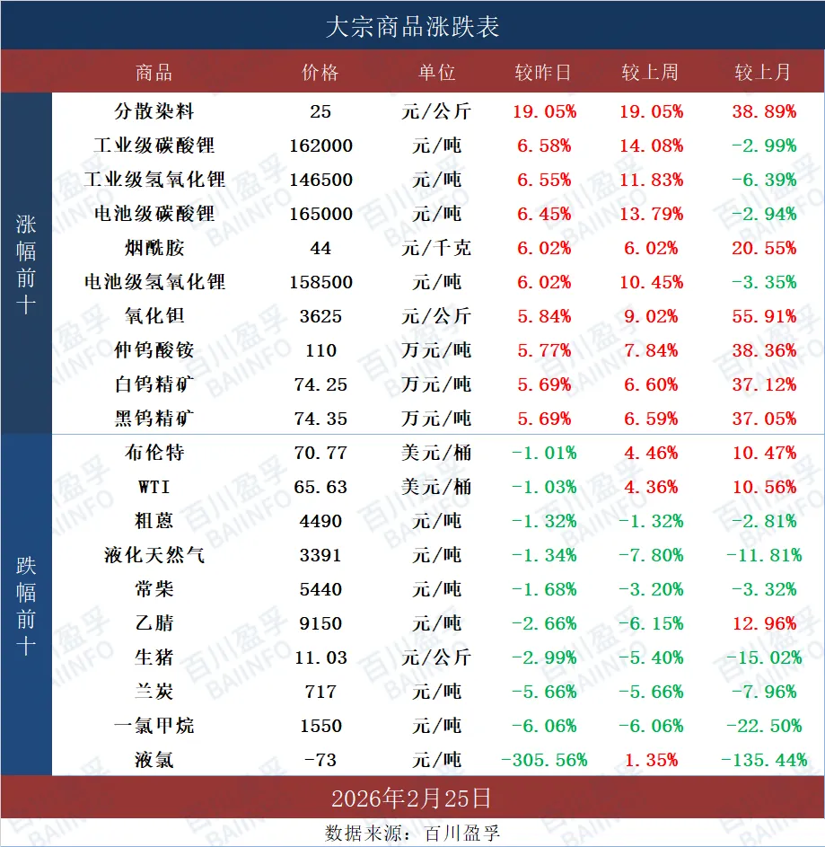 江浙地区分散染料市场价格上涨,染料中间体市场持续上行,成本端强劲支撑,染料企业上调对外报价。终端企业陆续恢复开工,下游厂家持谨慎观望态度,需求端表现欠佳。目前分散黑ECT300%市场主流价格在24-25元/公斤,一单一谈为主,现款自提。预计短期内分散染料市场淡稳运行。