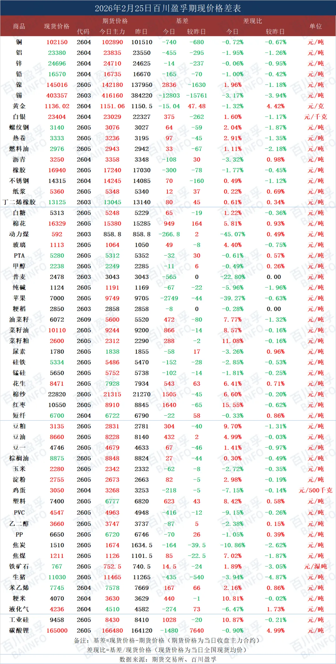 今日期现价格差表