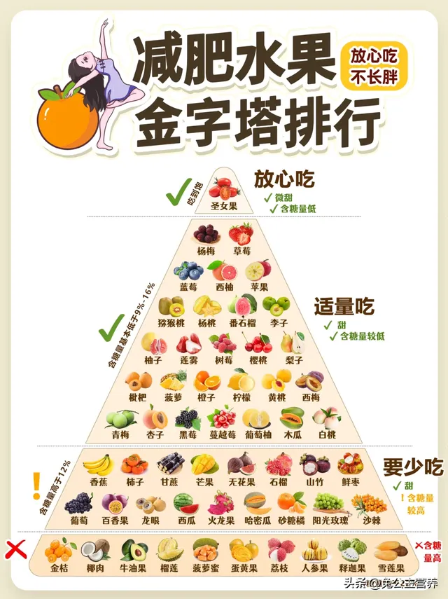 接下来是一群口感甜美但含糖量相对较低的水果小队。包括杨梅、草莓、蓝莓、西柚、苹果、猕猴桃、杨桃、番石榴、李子、柚子、莲雾、树莓、樱桃、梨子、枇杷、菠萝、橙子、柠檬、黄桃、西梅、青梅、杏子、黑莓、木瓜、蔓越莓、葡萄柚、白桃等。这些水果不仅能满足你的甜品欲望,还能帮助你控制糖分摄入。