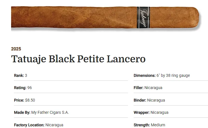 第三名:塔图阿赫黑标小长矛(Tatuaje Black Petite Lancero)