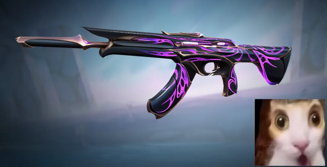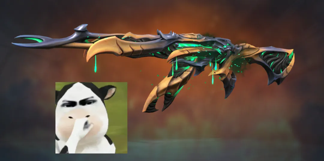 这把我自己用得少,主要枪身后边那个尖刺设计看着实在硌手。不过用起来确实没得喷,所有音效都带点生物惨叫般的混响,切枪换弹很有力,尖刺收缩弹出也到位。除了外观,手感在狂徒里能排前面。