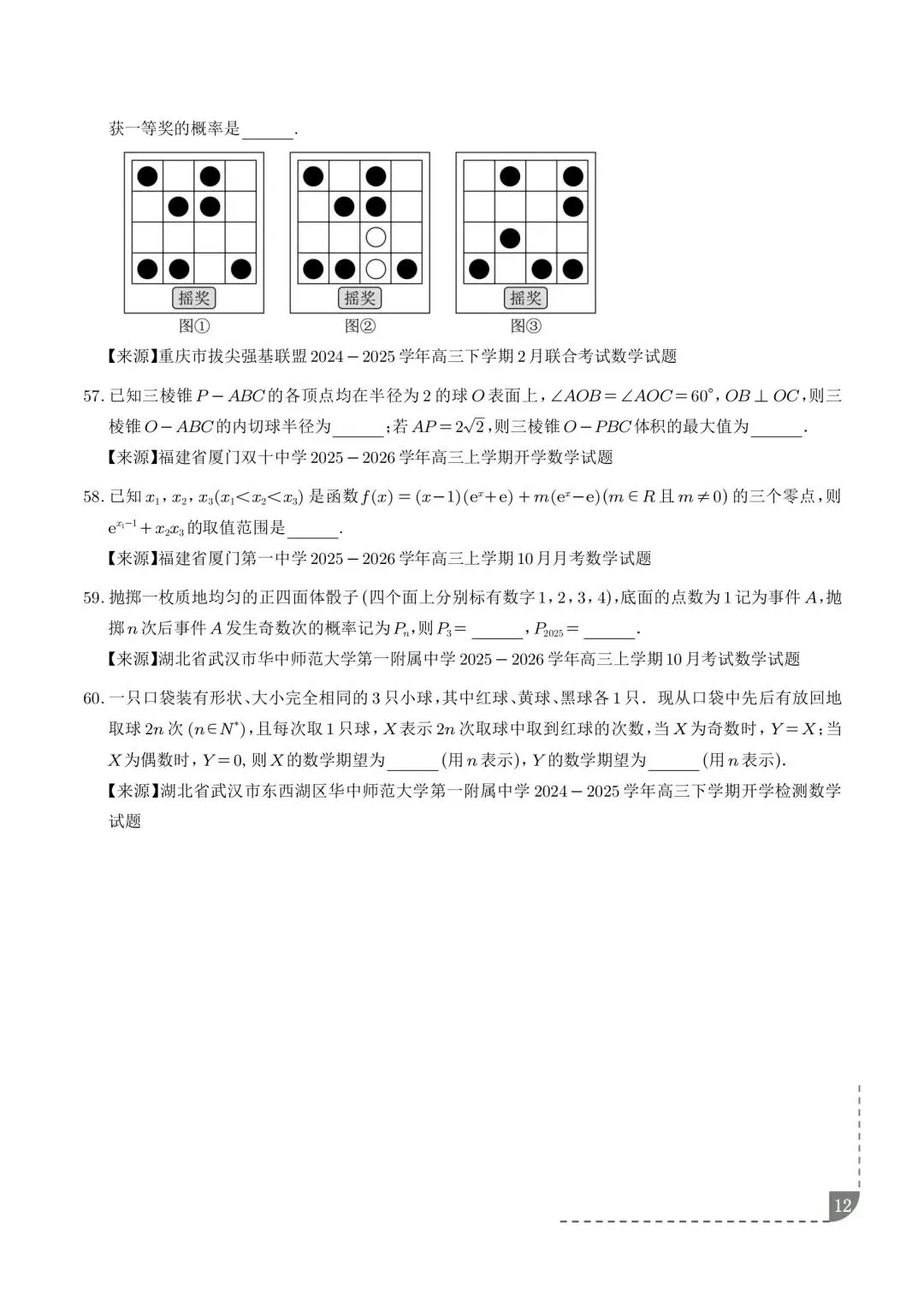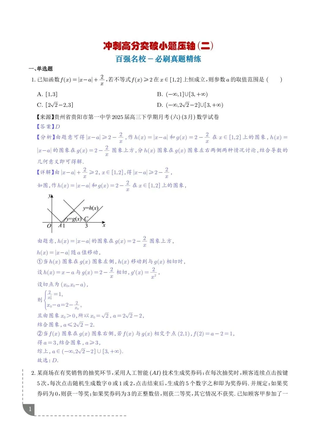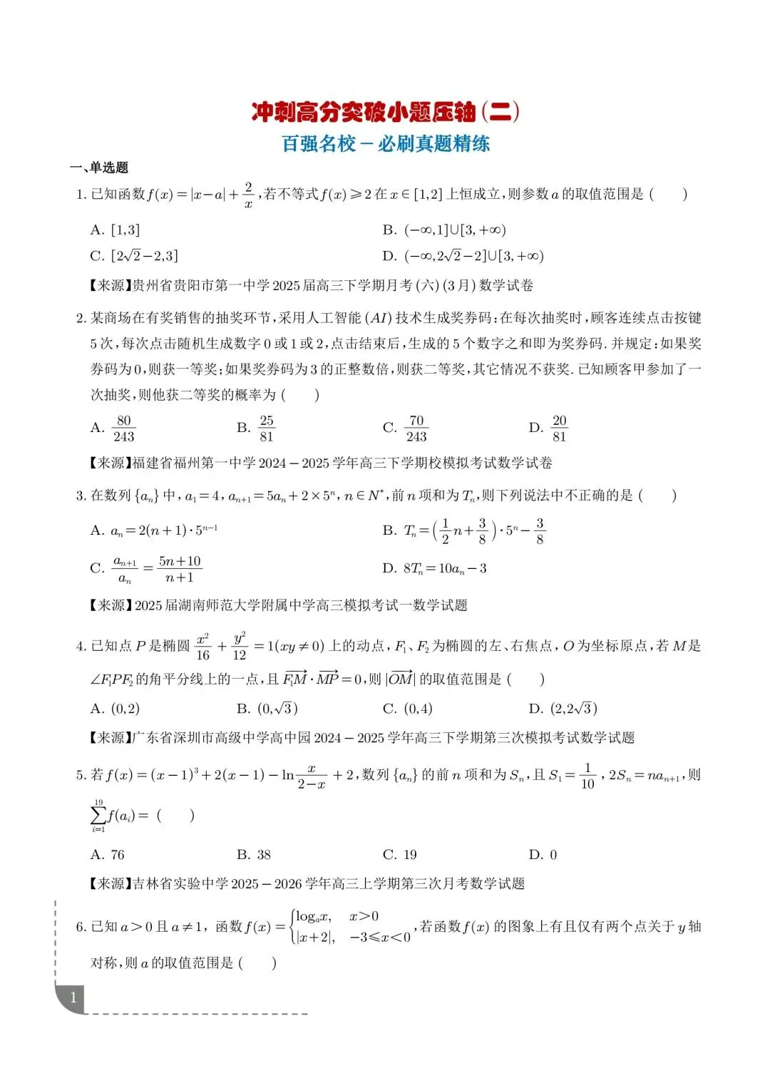 高考培优:高分突破小题压轴 (二)百强名校 必刷真题精练60题及答案