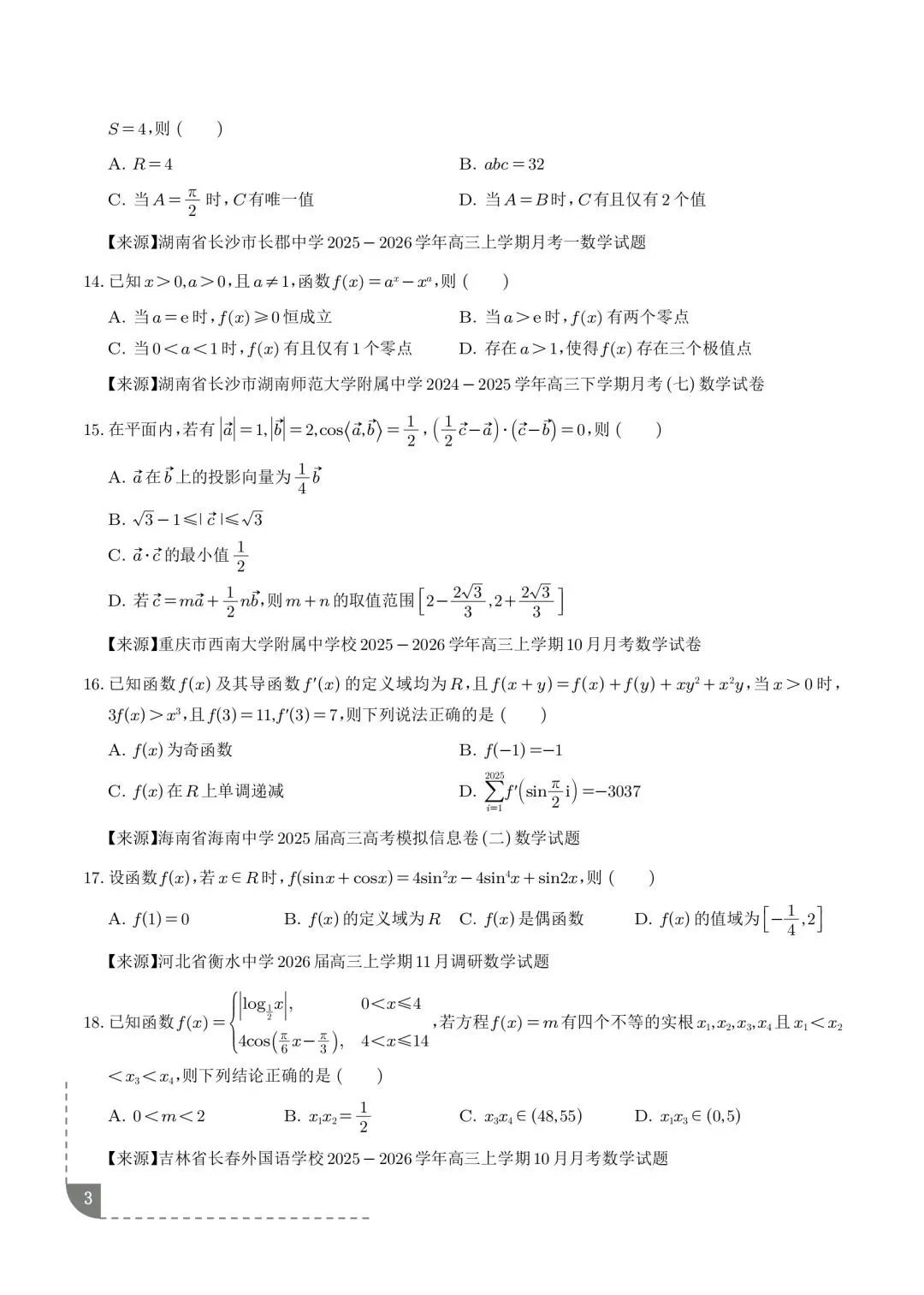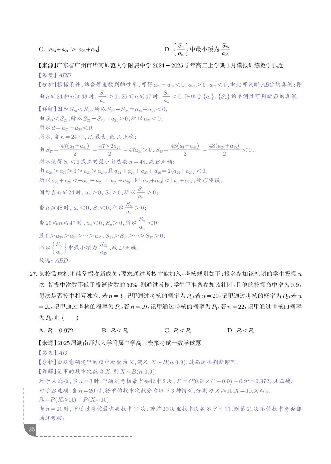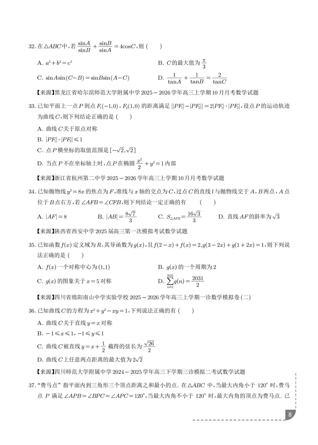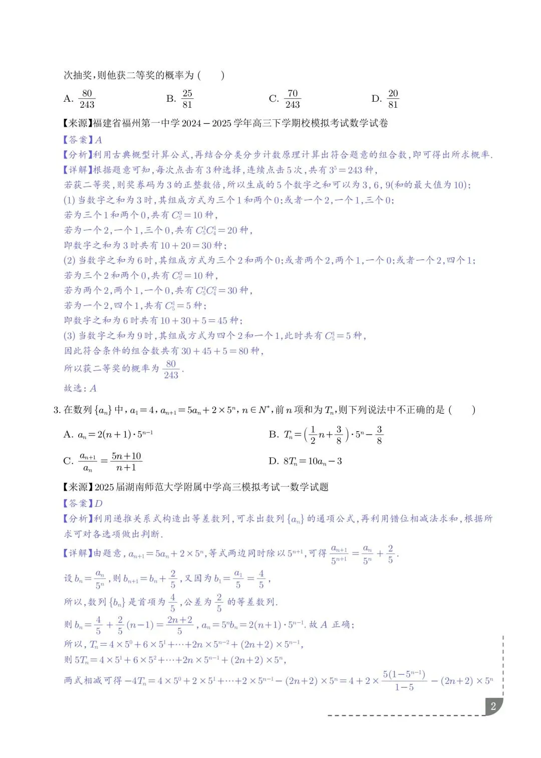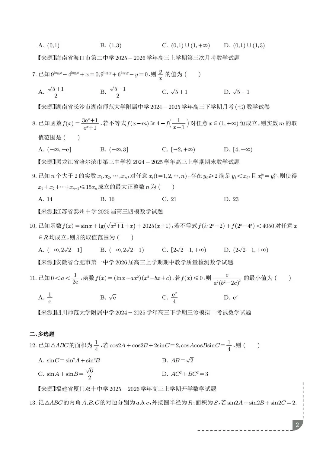 2:2025届各省市新高考数学优质试卷1000套及答案