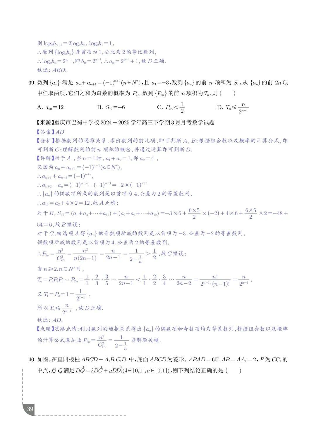 当前位置:首页>排行榜>高考培优:高分突破小题压轴 (二)百强名校 必刷真题精练60题及答案