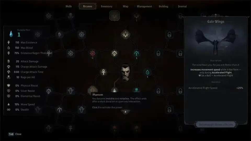另一个极其实用的技能,对早期和中后期都很有帮助,那就是幻影。这个能力非常强,以至于你无需与过强的审判官战斗就能获得战利品和吸血鬼之泪。所以我建议尽快解锁它。