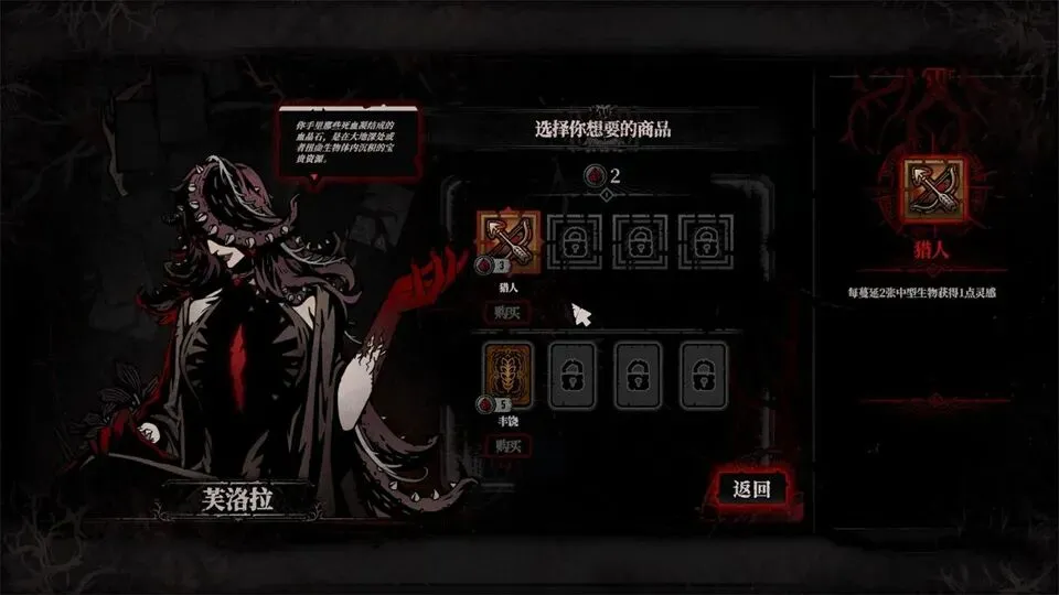 随着剧情推进,在基地的商店里会逐渐解锁一些血纹石和卡牌,购买卡牌虽然能获得一些新的卡牌种类,但也意味着抽到特定卡牌的几率会下降,尤其是在后期,很可能连续开几个卡包都拿不到想要的key牌,如果你的血液运营得不够好会比较难受。