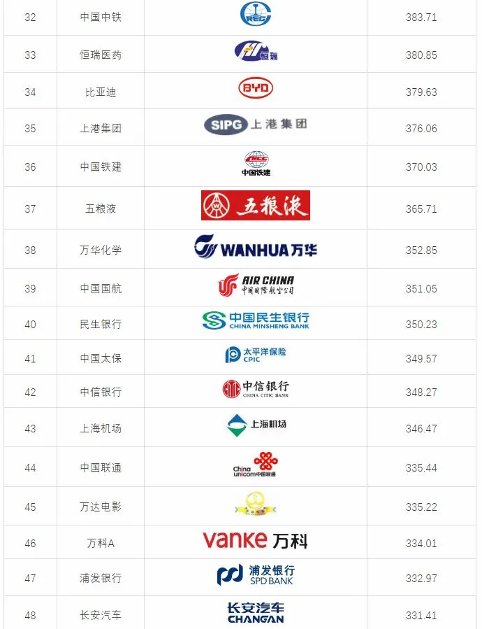 比如,第19位的美的集团,已经成为家电领域的领军企业;第31位的海澜之家,在服装领域赫赫有名;第33位的恒瑞医药,以出众的研发创新能力著称,被誉为中国医药界的“研发一哥”。