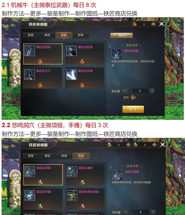 开局先领取兑换CDK领取方式: 进入游戏----左下角设置----礼包码兑换-----主界面右上角邮件领取礼包码:vip555 vip000【这个cdk是兑换泰拉石武器跟首饰材料的,领完等到50级以后直接可以去铁匠哪儿兑换一把自己的武器跟首饰