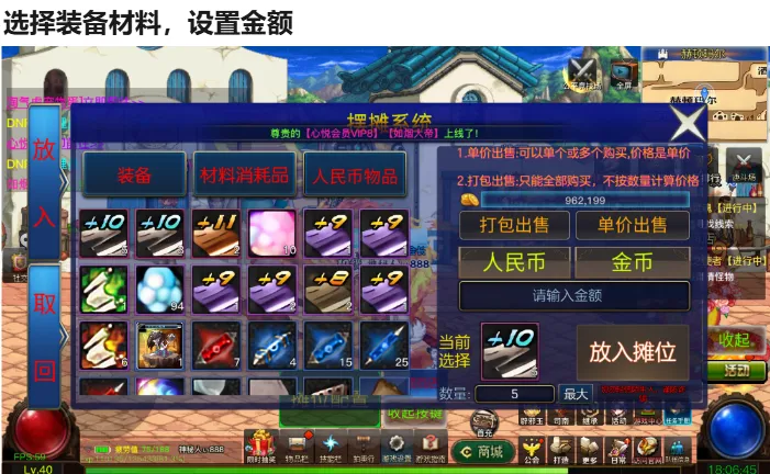 这里只讲一下摆摊,拍卖行和面对面赠送过于简单不细说了