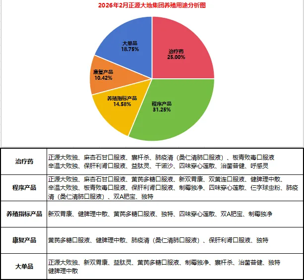 4、治疗药,程序产品,养殖指标产品,康复产品的比例越来越接近,市场客户对正源大地的产品理念接受程度显著提高。