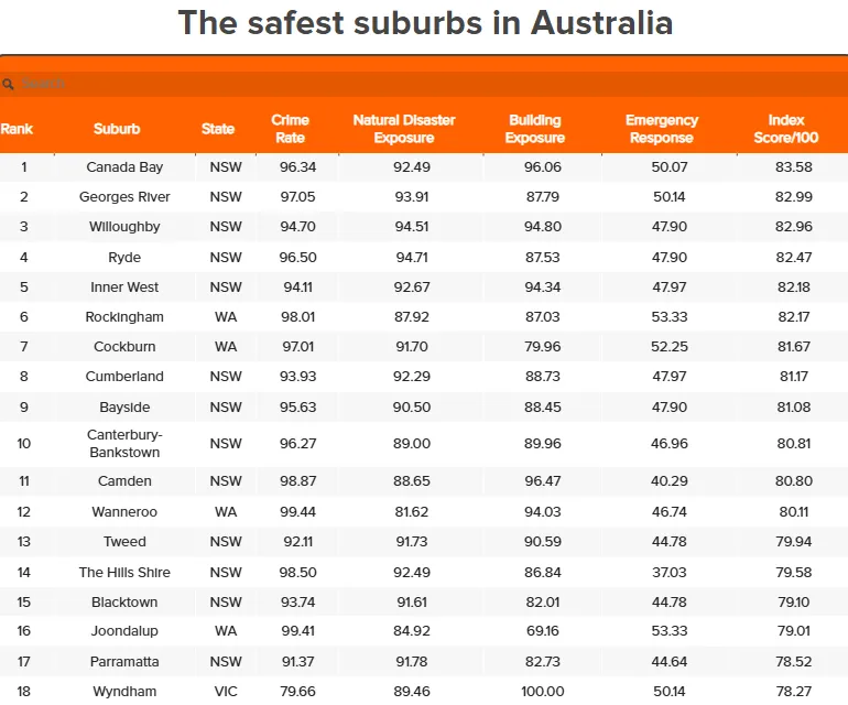 在全国最安全的前十个社区中,新南威尔士州占据了八席,几乎形成“碾压式领先”。排名第一的,是悉尼内西区的 Canada Bay。