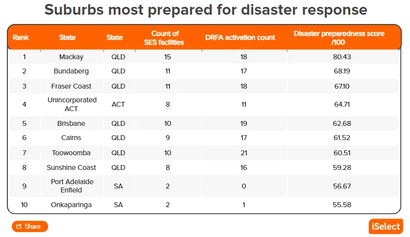 在这一项上,昆州反而表现得相对突出。像 Mackay、Bundaberg、Fraser Coast 等地,虽然自然灾害多,但 SES(应急服务)设施密集,历史上需要国家灾后资金介入的次数反而较少。