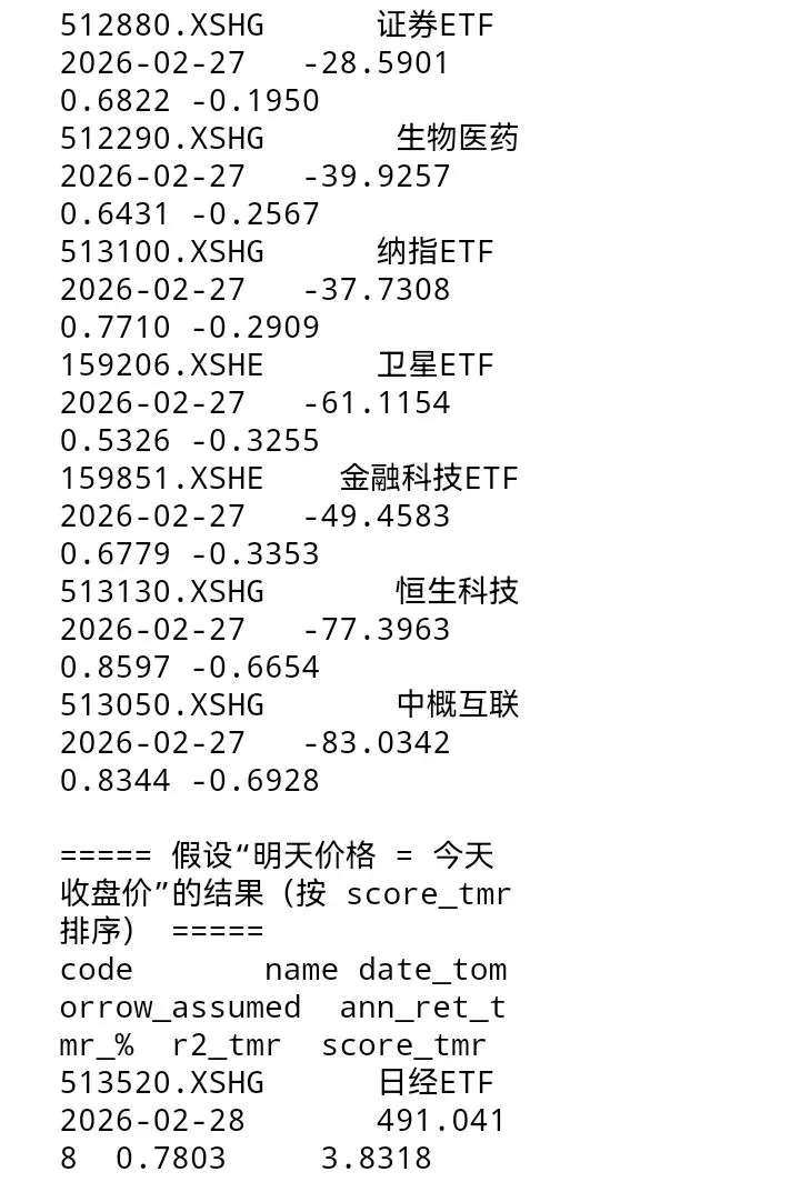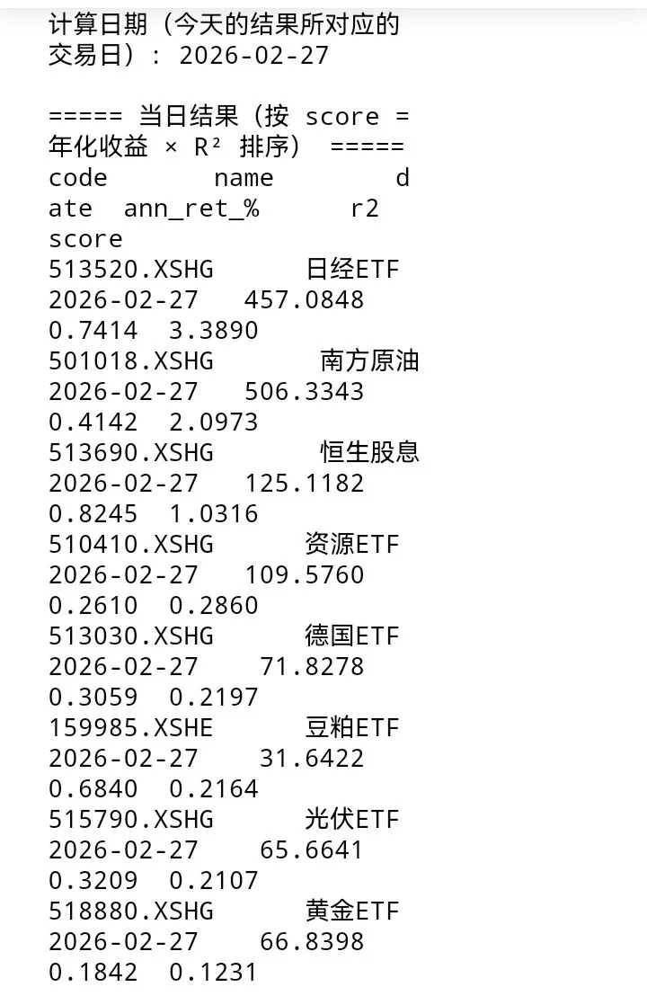 - 动量评分为标的最后一组数字,以表格标注日期收盘价计算