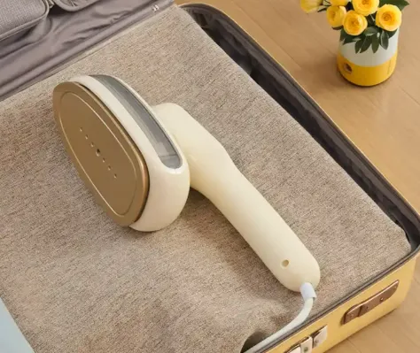 机身采用轻量化设计,整体体积偏小,支持折叠收纳,可放入行李箱或抽屉,适合出差、租房使用。机身配色为浅色系,外观简约,无多余装饰,操作面板仅有一个按键,开机后自动预热出汽,无需复杂调节。预热时间约30秒,蒸汽量适中,无明显漏水情况,熨烫时可抚平衣物表面轻微褶皱。配备250mL小型可拆卸水箱,一次加水可熨烫3-4件薄款衣物,机身带有防干烧设计,水耗尽后自动断电,仅能满足日常应急熨烫。
