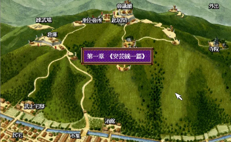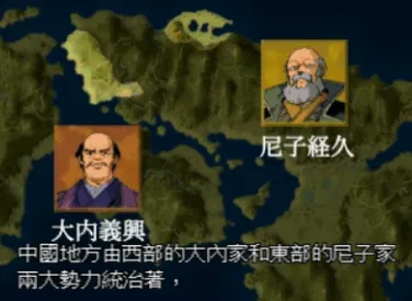 该游戏由中国台湾的第三波公司汉化,做得相当不错,甚至连过场动画也加上了中文字幕。但和其他的汉化作品一样,仍存在中文平台的问题,运行游戏时,即使挂上一内码转换平台,还是有部分字看不懂,需要在GB码和BIG5码间不断地转换,实在很头疼。下面就让我们跟随这位战国第一智将,一起再回到从前......