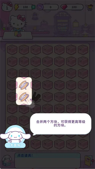 在合成界面,按照大耳狗的指引,将两个相同等级的方块合并,就能获得更高等级的方块,解锁更多萌趣内容。