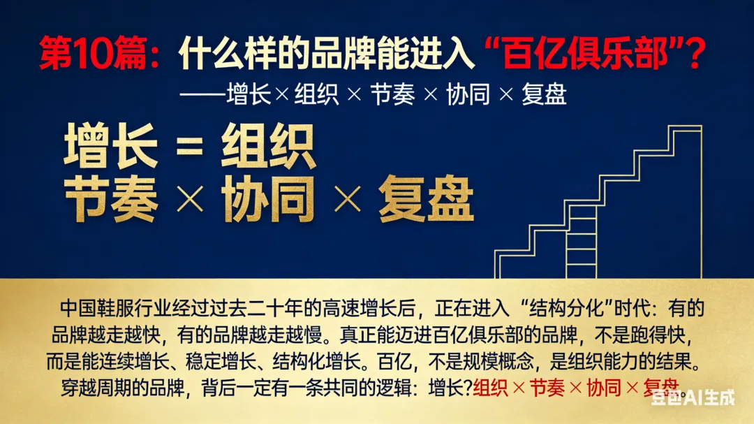 真正能迈进百亿俱乐部的品牌,不是跑得快,而是能 连续增长、稳定增长、结构化增长。百亿,不是规模概念,是组织能力的结果。