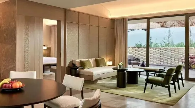 技术层面,构建“空间场景化设计”方法论,针对商务、度假、亲子等不同客群,适配构建空间功能与氛围,同时提供设计、施工、软装一体化服务,与国内一线软装品牌建立长期合作,确保空间风格高度统一。