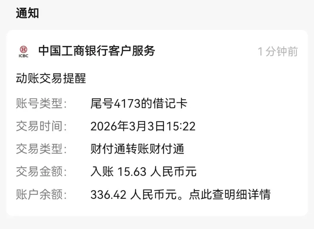 今天上班时,手机“咚”的一声,到账一笔钱,让我明白了什么叫一分耕耘一份收获,更让我知道啥叫三分钟热度,也有三分钟的收获......