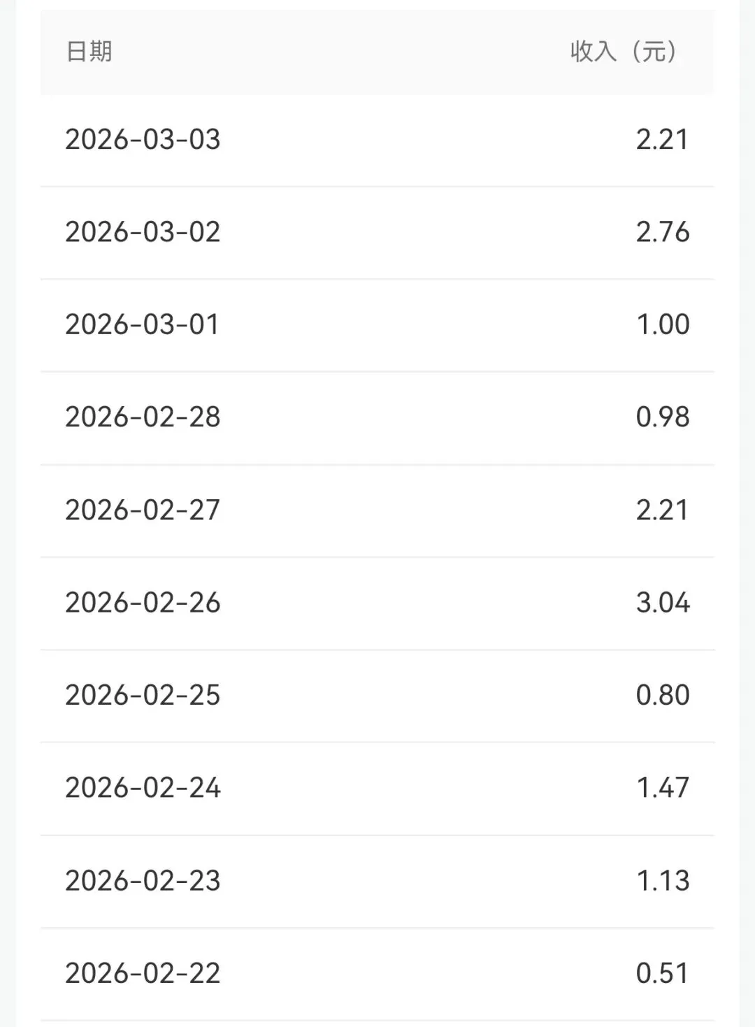 当我想摆烂时,今天打开后台一看,竟然每天都有零星几毛、一块的收入;