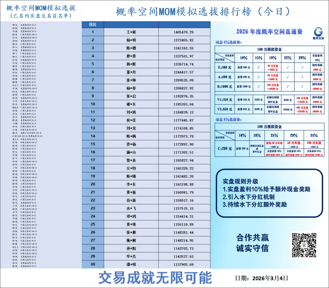 >2026/3/4选拔排行榜前30名