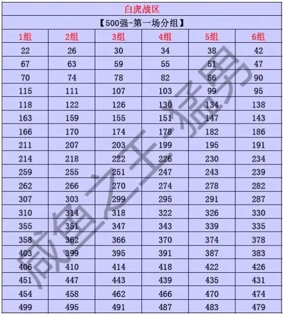 年赛500强分组赛对阵表【第一轮】,
