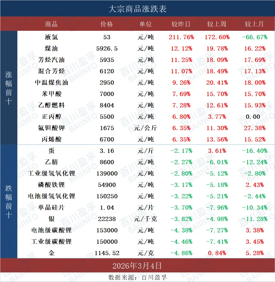 今日国内正丙醇市场价格强势上涨,中东地缘风险加剧,油价继续大幅攀升,乙烯价格宽幅上行,成本端提振市场情绪,正丙醇卖方报盘大幅挺涨,下游丙酯企业按需跟进为主,正丙醇市场价格强势上涨,目前正丙醇市场主流价格均值参考至5500-5700元/吨,实单可商谈,具体以实际交易为主。