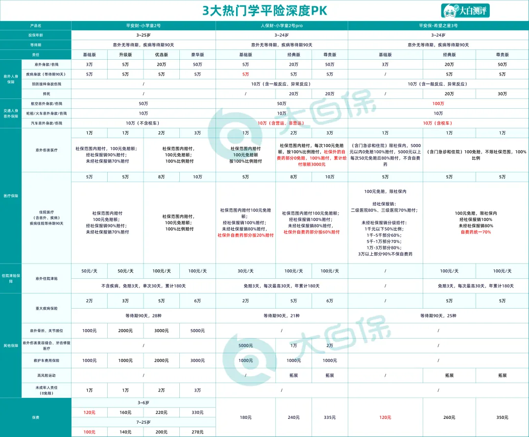大白连夜扒完市面上热门学平险,精挑细选出这3款大公司学平险,平安小学童2号、人保小学童2号pro、平安希望之星3号,看看哪款更值得买?适合哪些宝宝?在哪买?