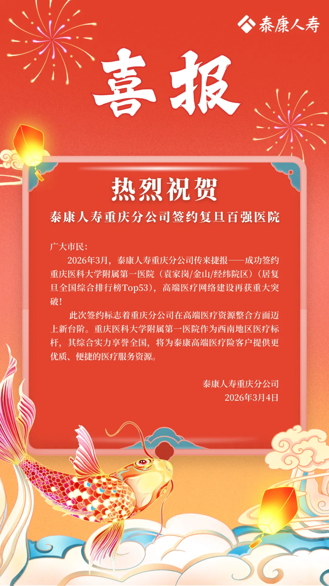 喜报|热烈祝贺重庆分公司成功签约复旦百强医院——重庆医科大学附属第一医院(袁家岗/金山/经纬院区)