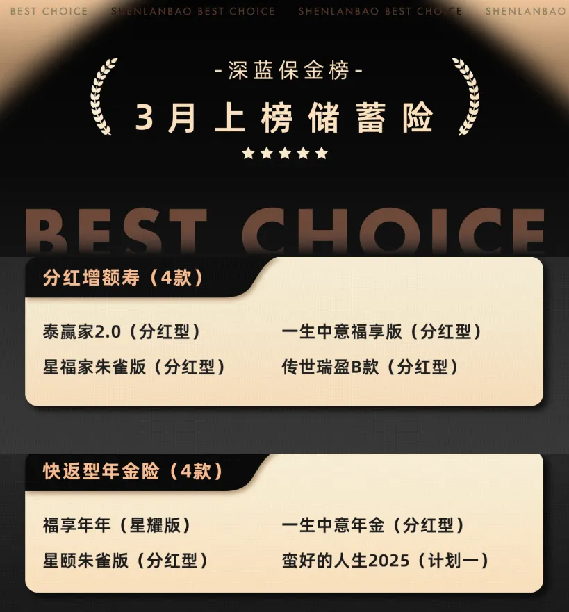 为了帮大家少踩坑、少对比,我们整理了3 月份储蓄险金榜,从安全性、收益表现、灵活度等维度筛选出更有竞争力的产品,照着选,更省时也更安心。