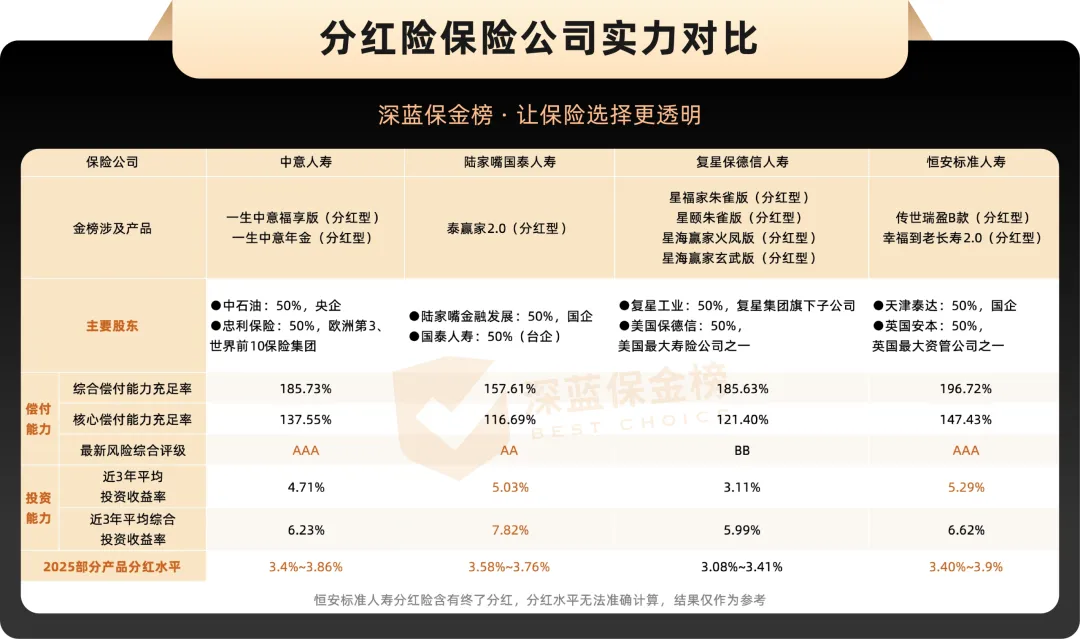 本期金榜的分红险,涉及4家保险公司,如下表: