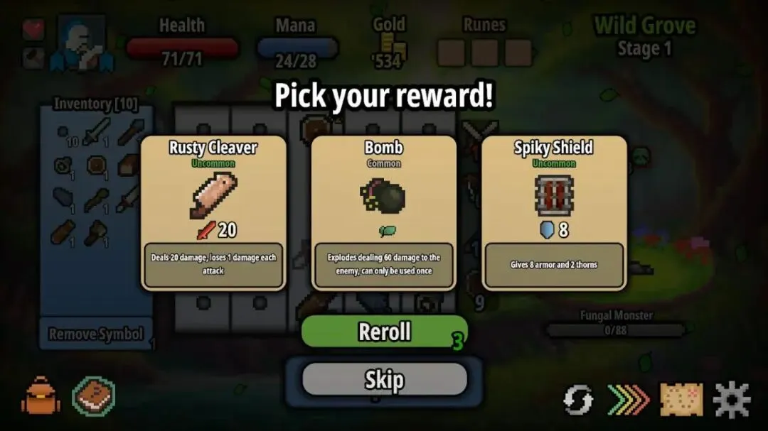 玩法真的太有新意了,把老虎机和牌组构建玩出了新高度,不是传统的打牌出牌,而是靠旋转卷轴决定你的命运。你只需要收集强力符号,慢慢打磨自己的玩法策略,每一局都能解锁新的搭配和协同套路,越玩越上头。