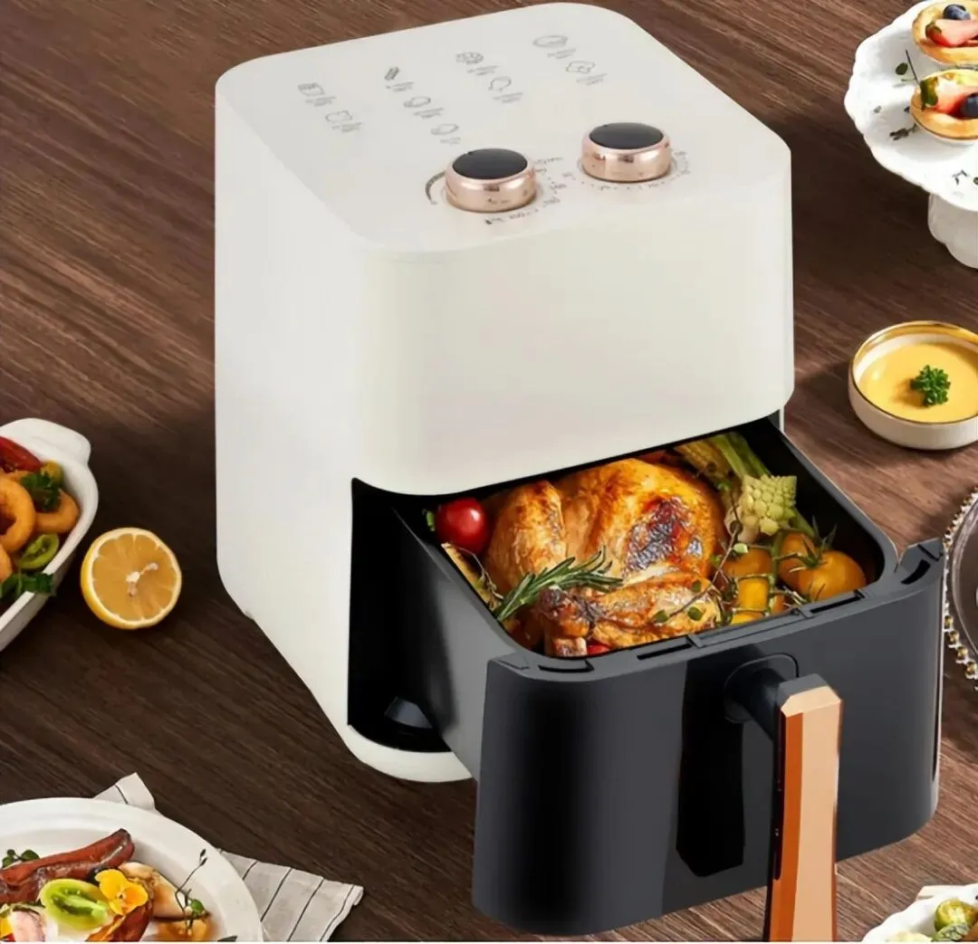 ◇拥有5.5L黄金大容量,能满足多人口家庭的烹饪需求,朋友聚餐也能轻松应对,配备智能操控面板,操作便捷,还带有定时功能,可根据食材需求调节时间和温度,适配不同烹饪场景。