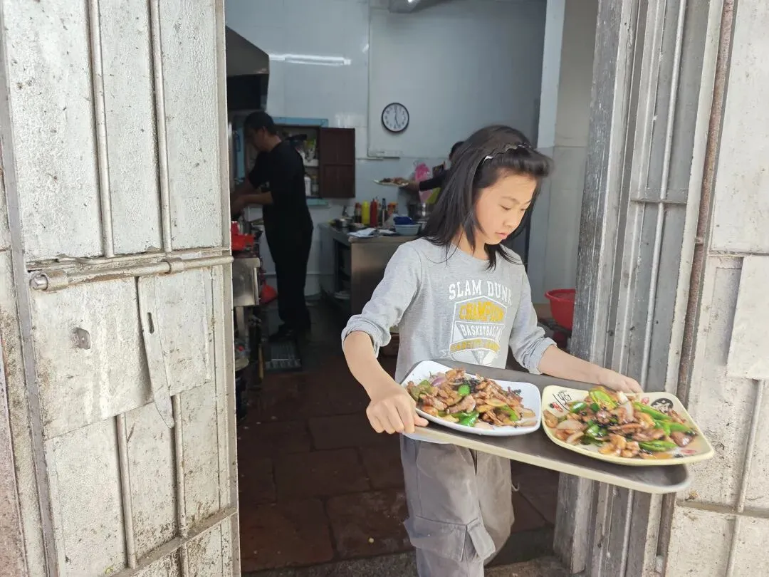 在上次推荐的祥龙煜记饭店,84年就开业的这家餐厅里,我讲到他家的甜酸蛋是我吃过排第二的,当时就有朋友问我,那排第一的是谁?对了,今天我要说的就是这家餐厅,也是朋友们来赤坎和塘口玩,我推荐最多去吃饭的地方之一。去过很多餐厅吃饭,也只有这家是我唯一去做过帮厨的。下图是春节前带着孩子们去帮忙时拍的。
