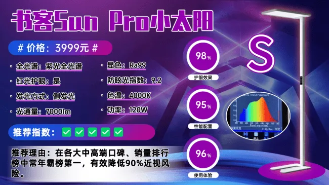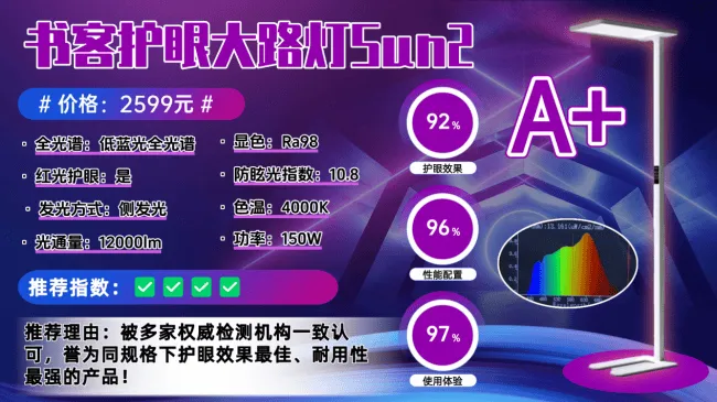 护眼大路灯第一名深度分析:书客护眼大路灯SUN2;被多家权威家电与眼科医生高度评价,誉为 旗舰护眼大路灯的巅峰之作!