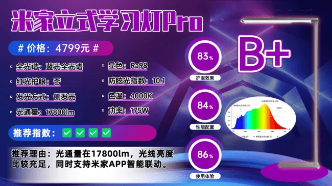 护眼大路灯第四名:米家立式学习灯Pro
