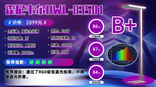 护眼大路灯第六名:霍尼韦尔HWL-03S01;通过了RG0级低蓝光标准,不具备蓝光伤害。