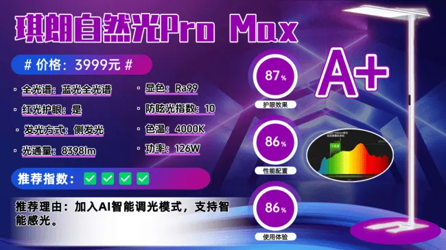 护眼大路灯第八名:琪朗自然光Pro Max