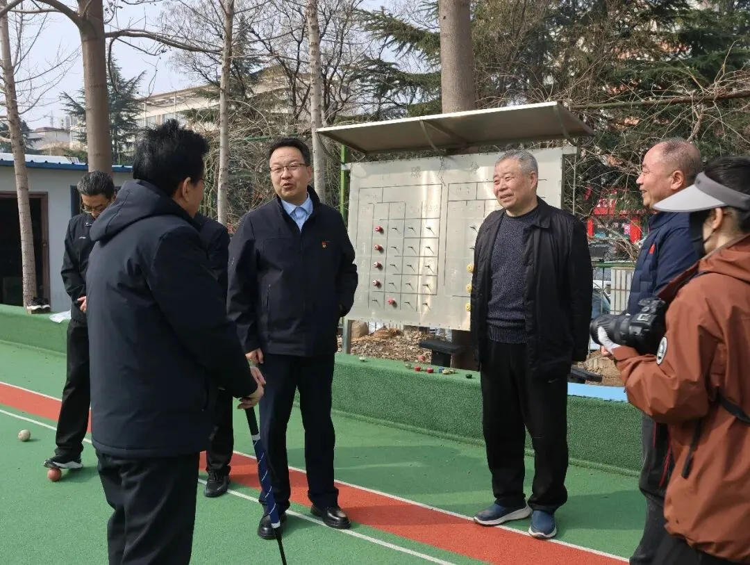 会后,吴鹏钰一行实地察看了门球场使用情况,与正在门球场活动的老同志亲切交谈,详细了解日常训练和赛事组织,对大家积极向上的精神风貌给予肯定。