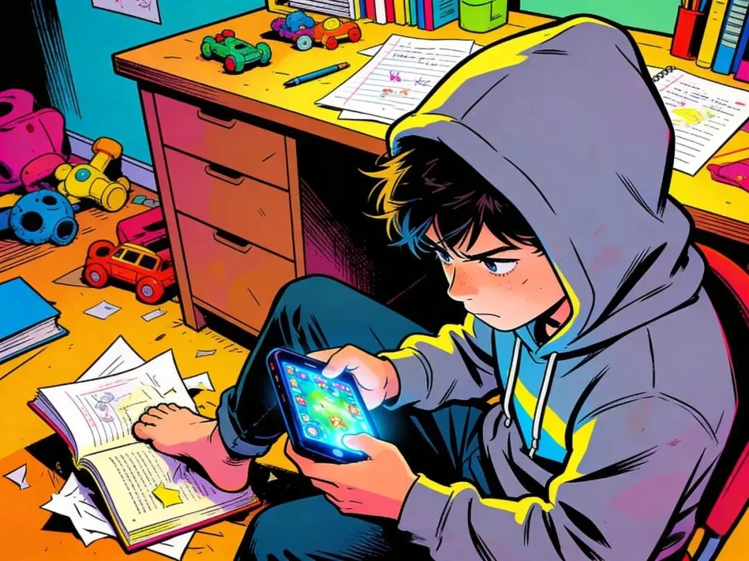 妈妈试过没收手机,结果小宇直接摔门,躲在房间里不出来;试过定规矩,“写完作业玩 30 分钟”,但小宇写 5 分钟就走神,根本完不成,最后规则不了了之。妈妈崩溃又困惑:“他明明能专注玩游戏,怎么就不能专注学习?肯定是游戏把他带坏了!”