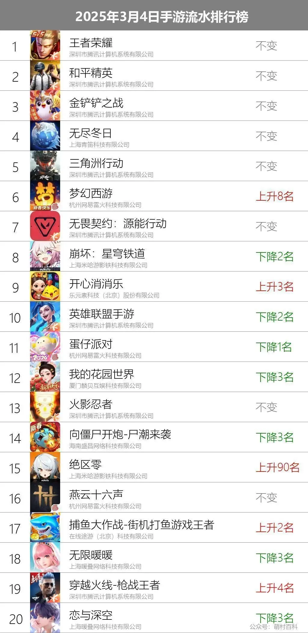 3月4日手游流水排名榜单(文字版)