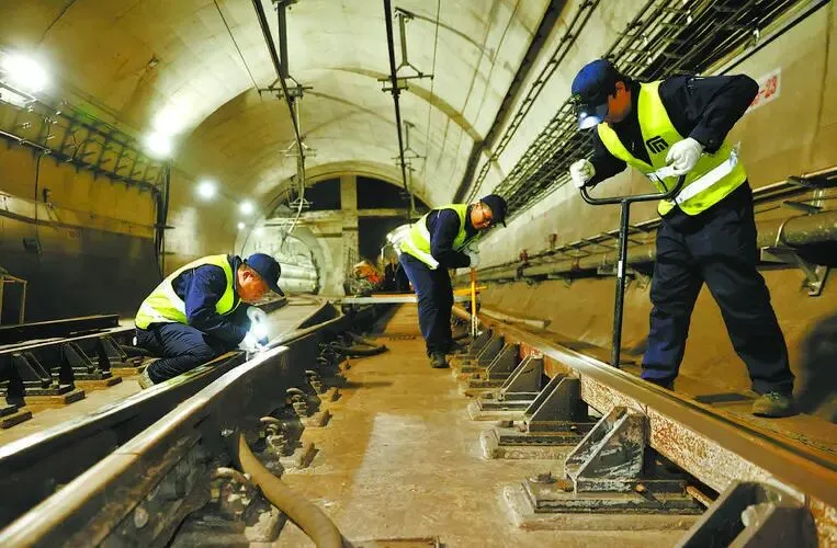 这是最苦但最不缺活干的岗位。每天深夜等地铁停运后,扛着几十斤的工具下轨道,检查钢轨有没有裂缝、隧道有没有渗水、桥梁有没有变形。探伤工还要推着超声波仪器,一寸寸扫钢轨内部缺陷,防止断轨事故。