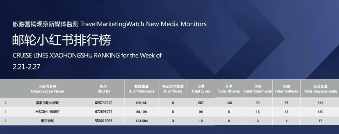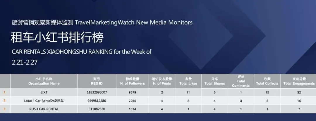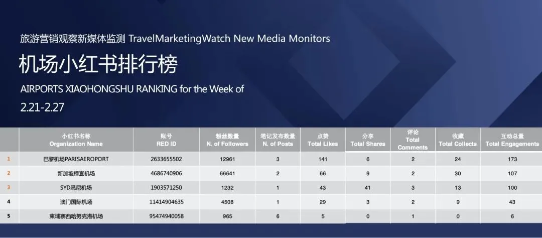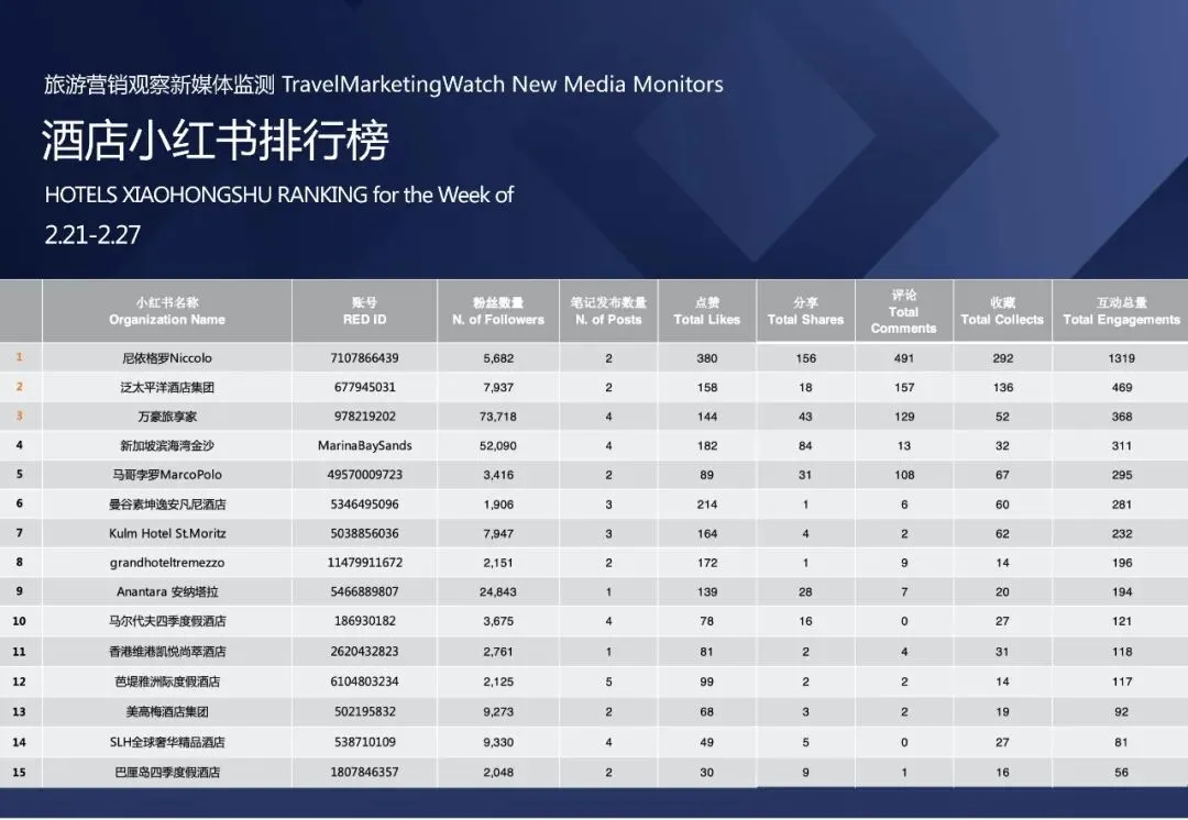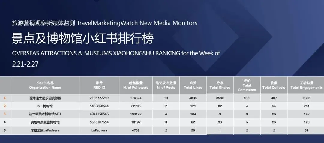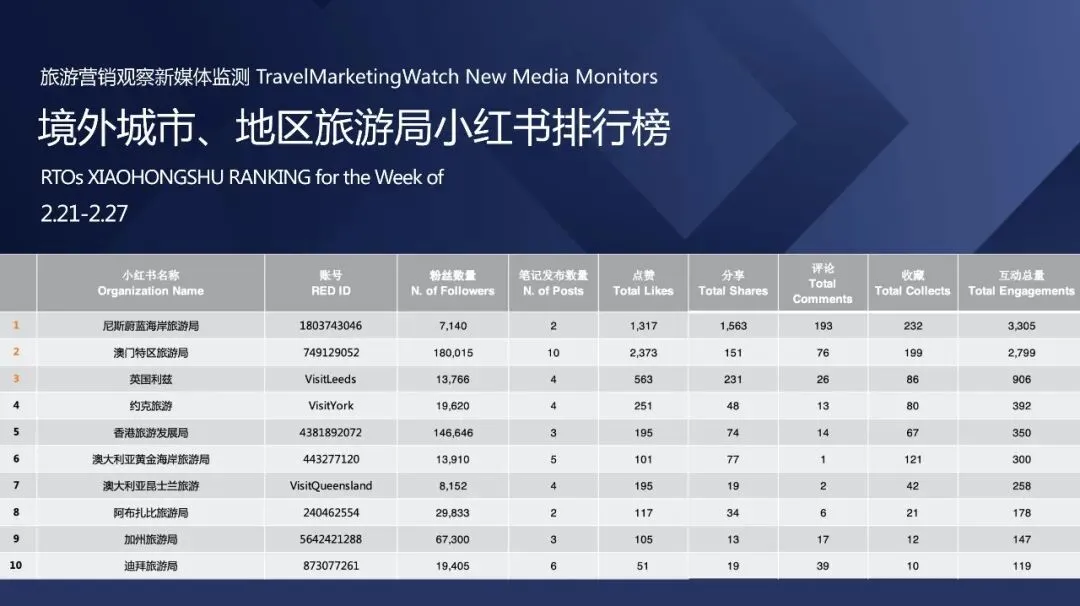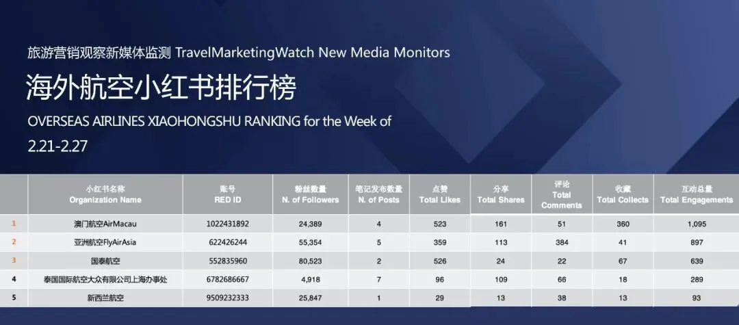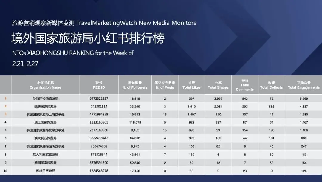 榜单 | 旅游品牌【小红书】影响力排行榜(2.21-2.27)