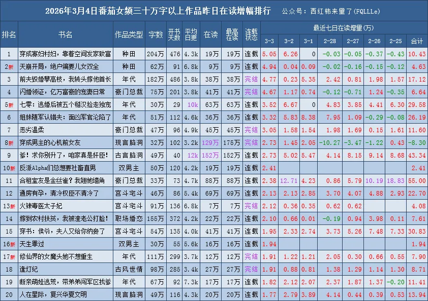 是根据番茄原创阅读榜