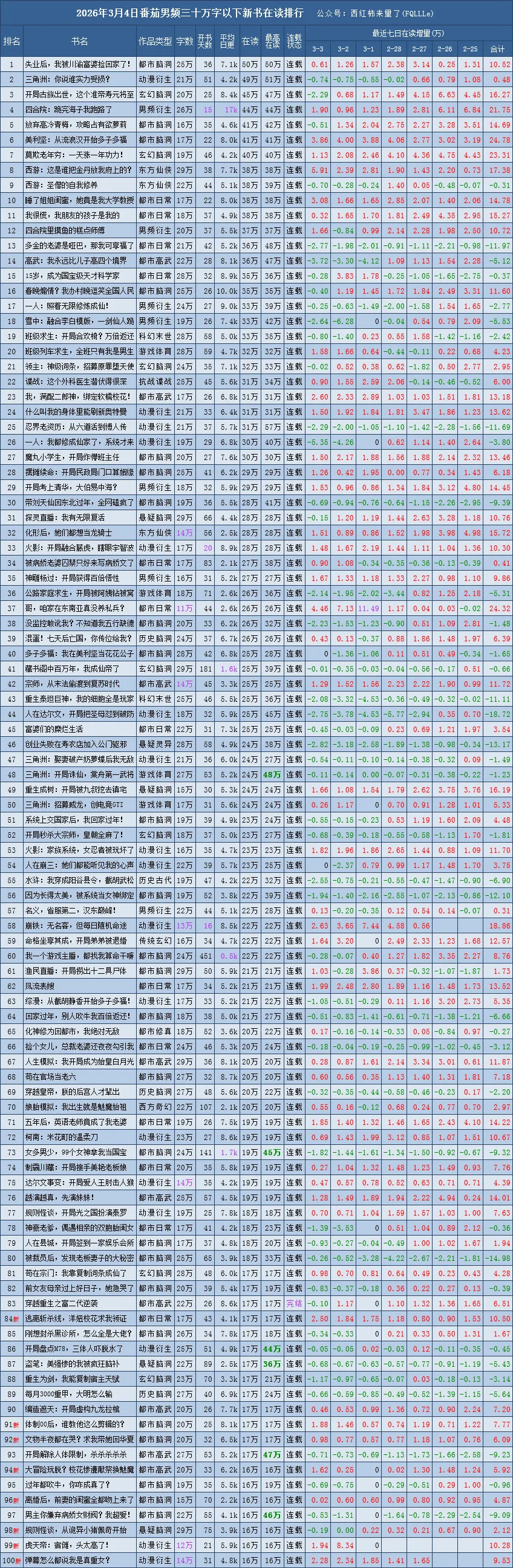 红色新字表示该作品首日进入该榜单top20