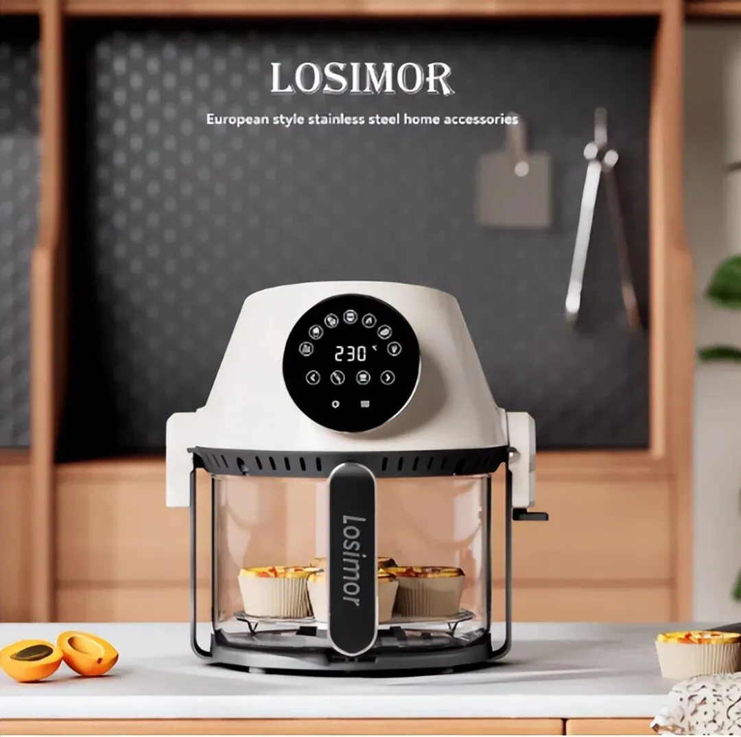 ② 大容量可视化:拥有足以容纳整鸡的大容量,配合前视窗设计,无需弯腰或开盖就能看到食物的焦嫩程度,操作人性化。